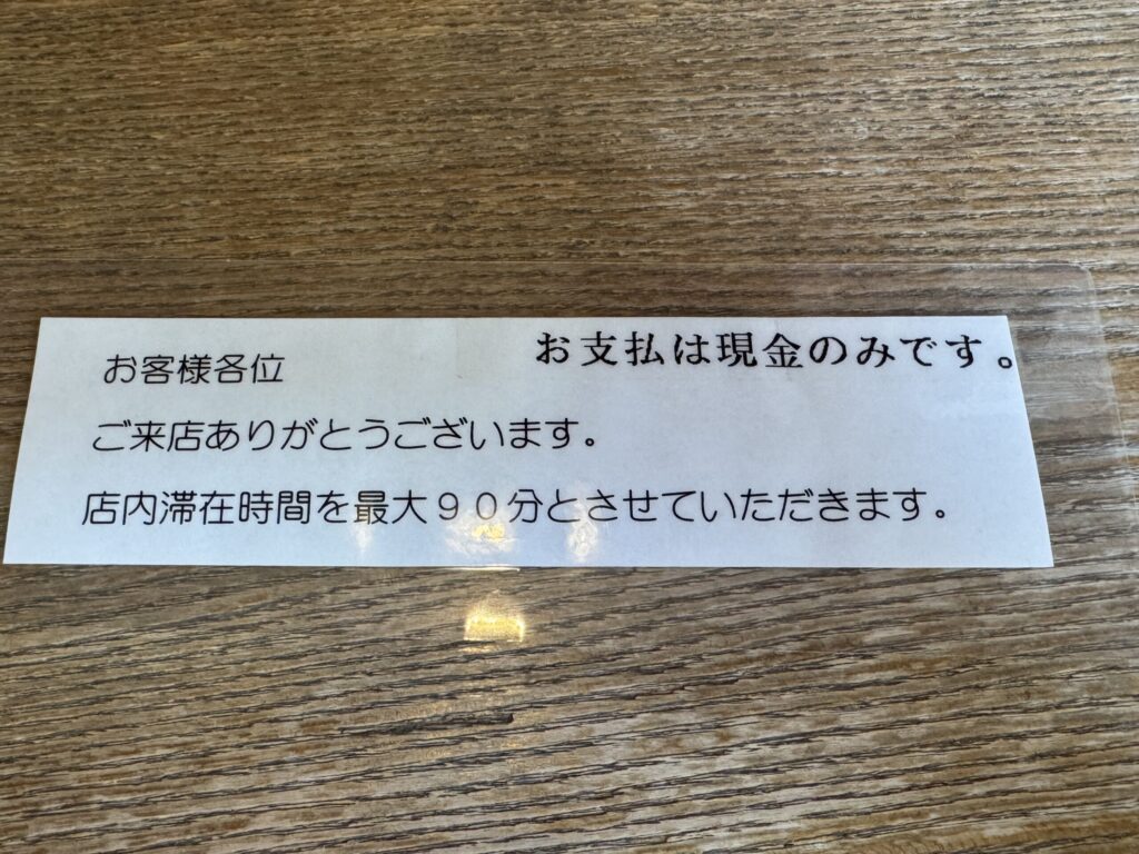 - お支払いは現金のみです。カードや電子マネーは使えないので要注意
