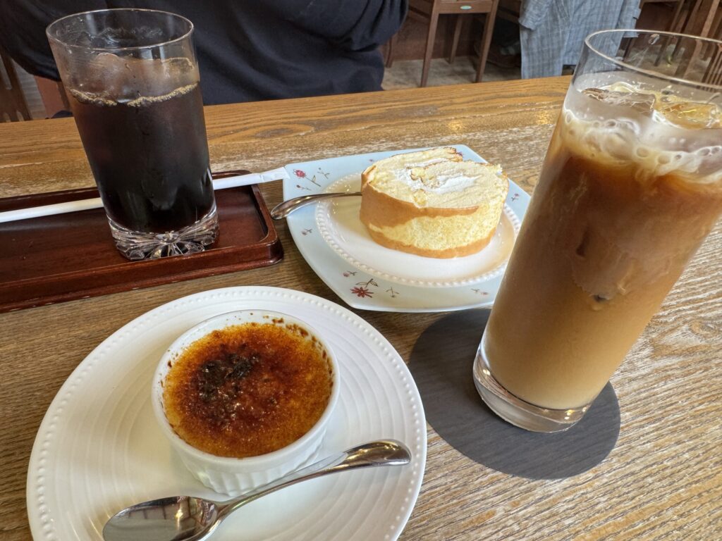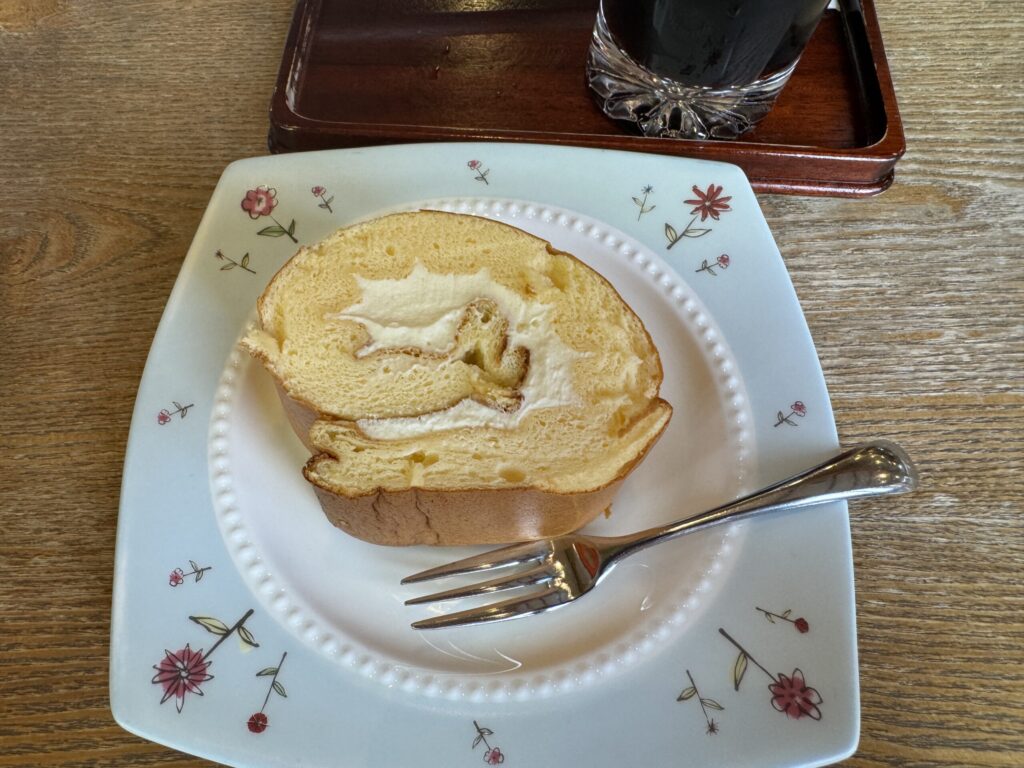 夫 アイスコーヒーと自家製チーズスフレロールケーキ